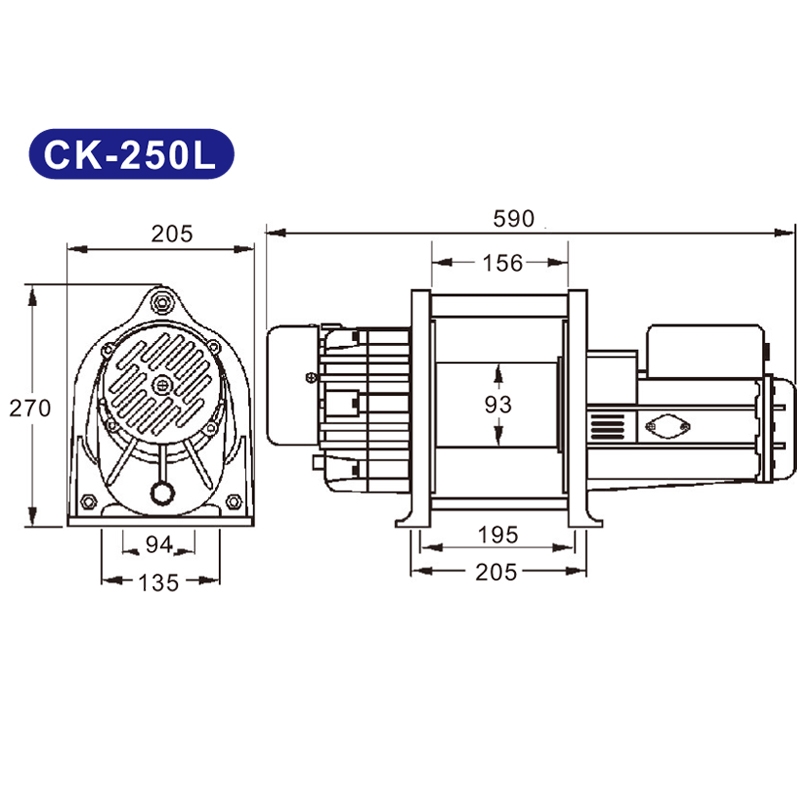 | CK-250L | 205 | 270 | 94 | 135 | 590 | 156 | 93 | 195 | 205 |