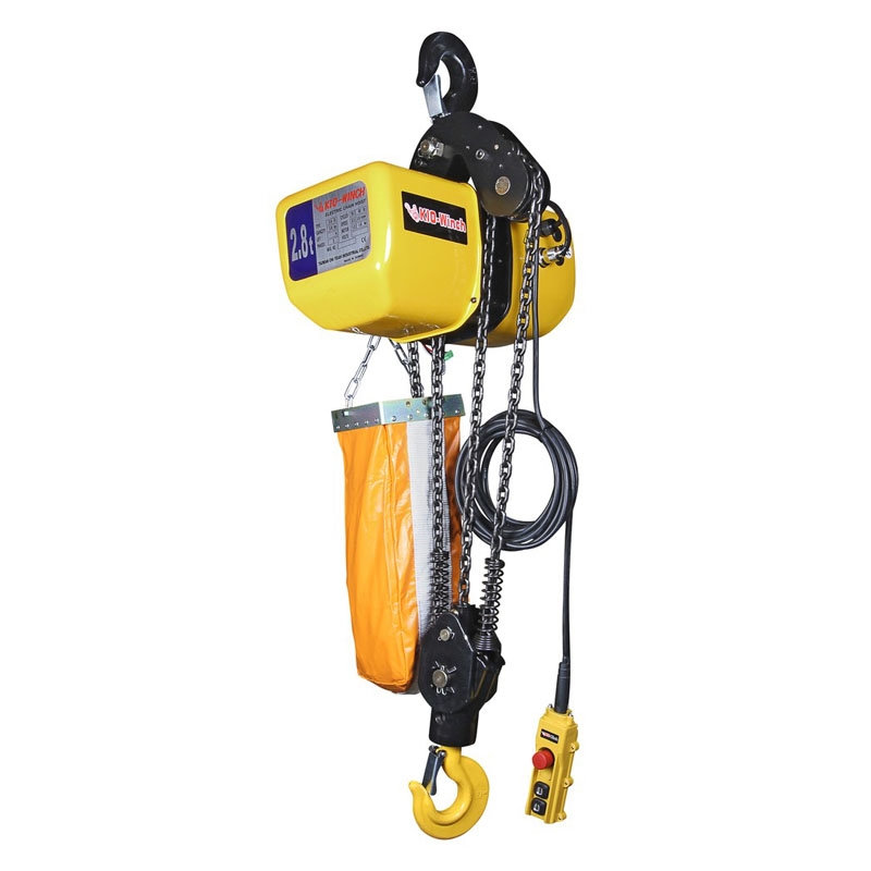 | Model | Capacity (ton) | Lift (M) | Hoisting Speed (m/min) | Hoisting Motor (kw) | Chain Dia. *Pitch | Chain Falls Line | Control Voltage | Power Source | Min. Raidus Curvature(m) | Approx. Weight(kg) | ||